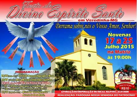 A Corporação Musical Manoel Alecrim convida a todos para a tradicional Festa do Divino Espírito Santo na cidade de Veredinha.
